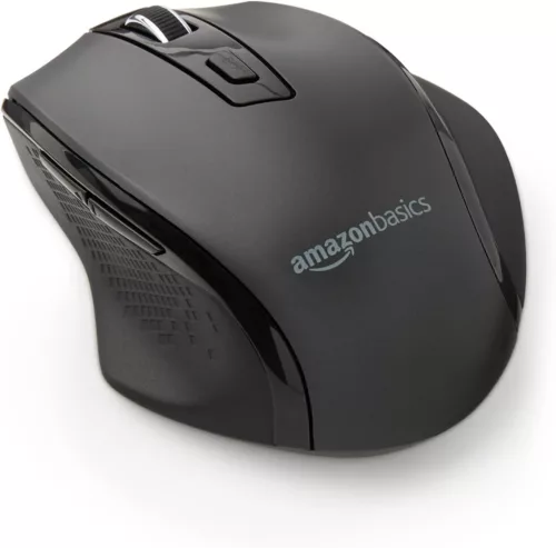 Amazon Basics - Ergonomic Wireless Mouse with Quick Scrolling, Regular Size, Black