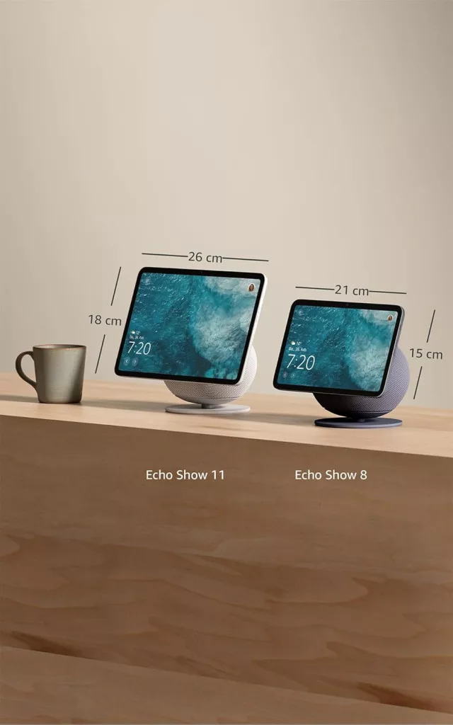 Új méret, nagyobb képernyő. A 11 hüvelykes okos kijelző élénk Full HD érintőképernyővel rendelkezik, amely 60%-kal nagyobb képernyőterületet biztosít, mint az Echo Show 8 (2025-ös kiadás), beépített okosotthon-központtal, AZ3 Pro chip-pel a nagy teljesítmény érdekében, valamint Omnisense technológiával a jobb környezeti élmény érdekében.