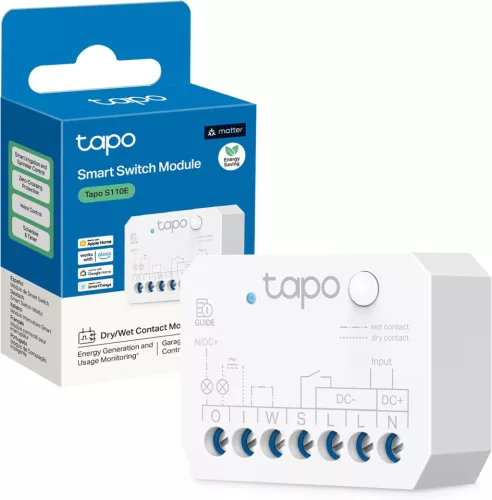 Tapo S110E intelligens kapcsoló, száraz/nedves érintkezési mód, garázskapu távirányító/kazánok/öntözőrendszerek/hozzáférés-ellenőrző rendszerek Bluetooth/WiFi-n keresztül, használatfigyelés