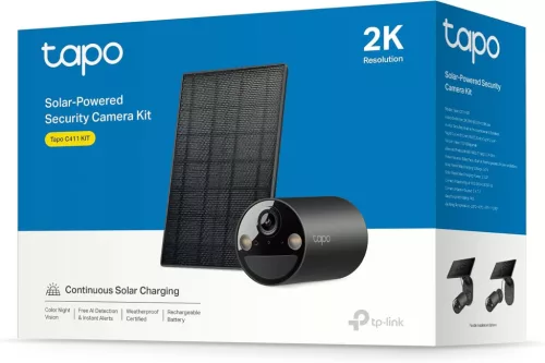 Napelemes, 2K felbontás, színes éjjellátó, IP65 időjárásálló, kétirányú hangátvitel, személyfelismerés, rugalmas tárolási lehetőségek (microSD akár 512 GB-ig, Tapo H500 Homebase, Tapo Care Cloud)