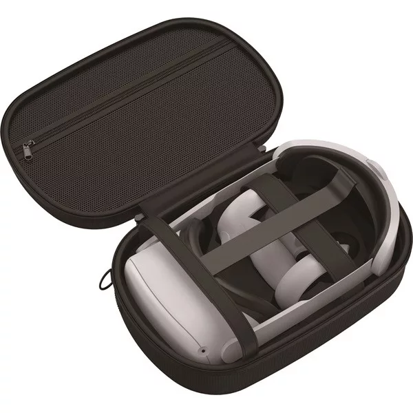 Tartsa távol Meta Questjét ezzel a párnázott hordtáskával. Tartozékok a headset számára, vezérlők, valamint egy cipzáras tasak a töltő és egyéb tartozékok számára.