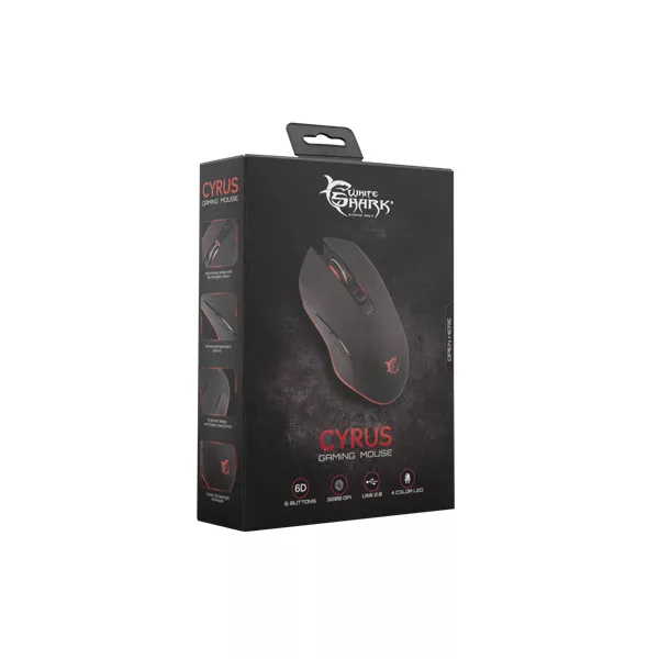 Meet the White Shark CYRUS mouse, your ultimate tech companion. With 6 buttons, an Instant A704 chipset, and a 3200 DPI optical sensor, it's the key to precision and control in both work and play. Its sleek black design, rubber coating, and 4-color illumination add style to your setup. The 1.8m braided cable ensures flexibility, while UPE bottom pads offer stability. Windows 7/8/10 and MacOS compatible, this 119g lightweight mouse is ready to elevate your digital lifestyle. Get ready for seamless performance with CYRUS.