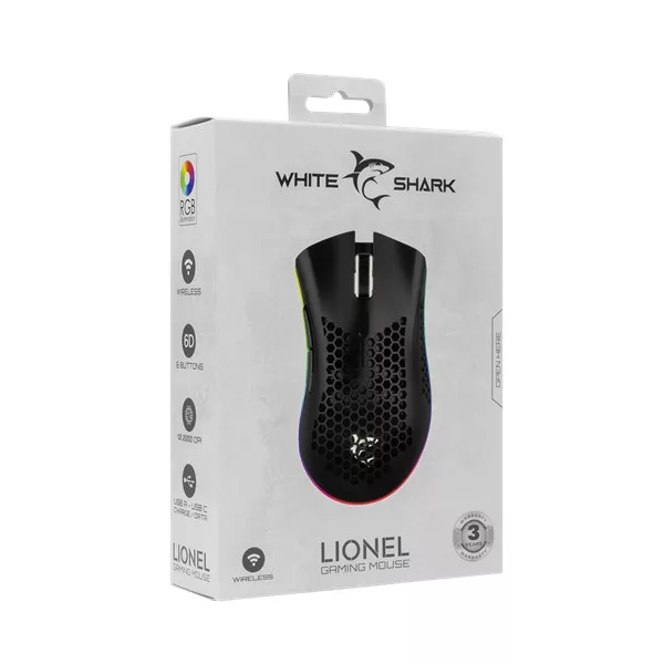 WHITE SHARK LIONEL-B, WGM-5012B vezeték nélküli gamer egér, fekete, 10000 dpi